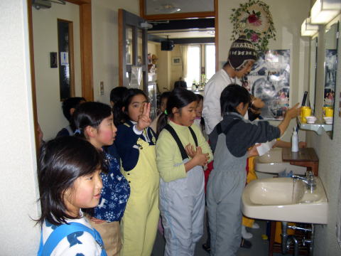 スキーの後は手洗いうがいで風邪予防!! みんな残さず食べれたかな??